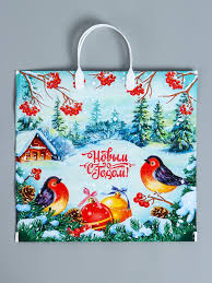 Пакет с пластиковой ручкой 37*34см Птичья Трель НГ